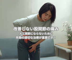 こちらからご覧ください。 改善しない股関節の痛み 人工関節にならないために早期の適切なケアが重要です。