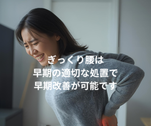 ぎっくり腰の早期改善に効果的な方法 こちらからご覧ください。 ぎっくり腰の早期改善に効果的な方法