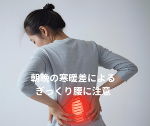 朝晩の冷え込みが、ぎっくり腰を引き起こす原因 こちらからご覧ください。 朝晩の冷え込みが、ぎっくり腰を引き起こす原因